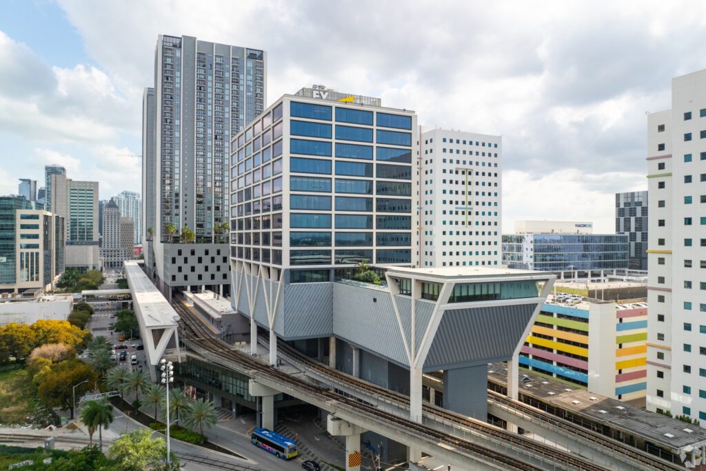 Both buildings are part of the larger MiamiCentral mixed-use development, which includes Brightline’s high-speed rail station as well as connections to Miami’s Metrorail and Metromover systems. The complex also features a Publix supermarket, the 18,000-square-foot Central Fare food hall, more than 800 residential units, and retail outlets such as Starbucks and Chick-fil-A.